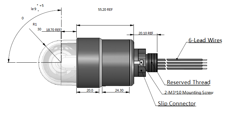 | OH construction | Aluminium alloy housing ,End cap (SUS316),Hemispherical Dome(Optical PC/PMMA) |